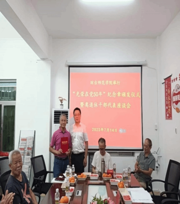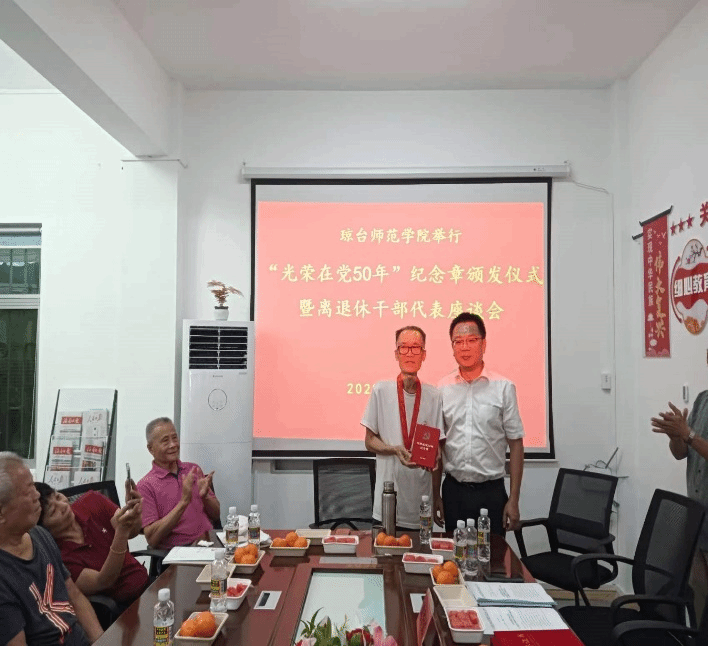 7月14日,ok138电子官方网站举行“光荣在党50年”纪念章颁发仪式暨离退休干部代表座谈会。校党委委员、副院长王华、组织部科长刘华民、“光荣在党50年”纪念章获得者及离退休干部代表等共同见证了这一温馨时刻,会议由王华副院长主持。
